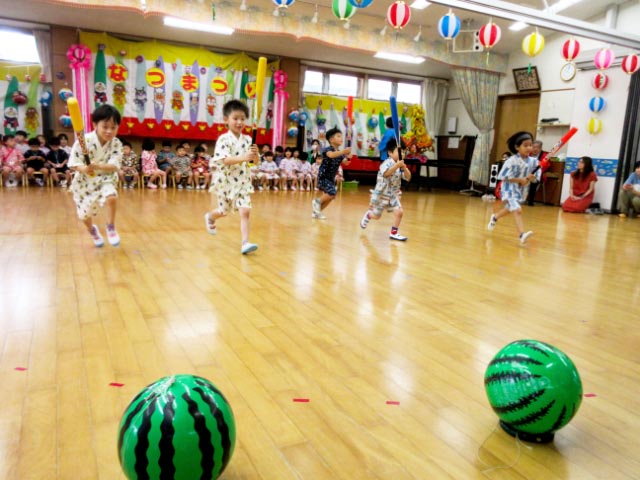 園長先生のお話もしっかり聞くことができ、いざ、夏祭りスタートです![]()