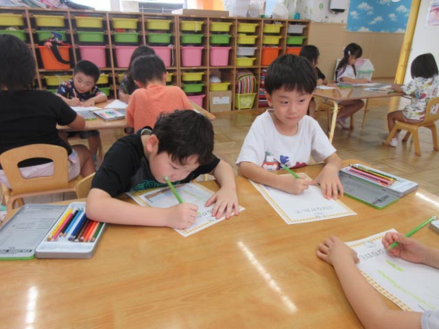 見たこと、感じたことを思い出しながら、稲の葉や白いお花を一生懸命に絵で表現していました