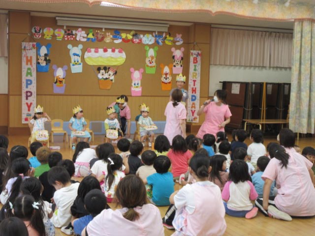 次は、お誕生日のお友達にみんなでお歌のプレゼントをします![]()