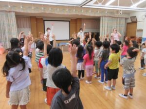 先生たちの声や動きに合わせて、笑ったり驚いたり、楽しい時間を過ごしました![]()