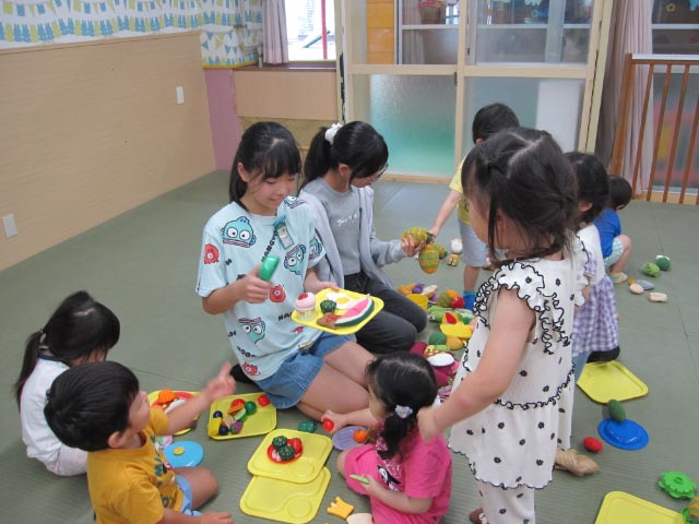 大きいお兄さん、お姉さんが来てくれて子どもたちは大喜び![]()