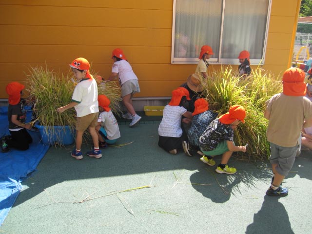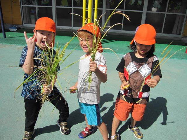 今日は、ひまわり組さんが育てたお米の稲刈りを行いました!