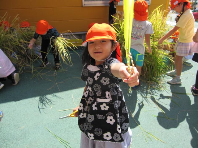 でも、少しずつコツをつかむと、「できた!」「もっとやりたい!」と、どんどん自分たちで稲を刈って、嬉しそうに持ってきてくれました![]()