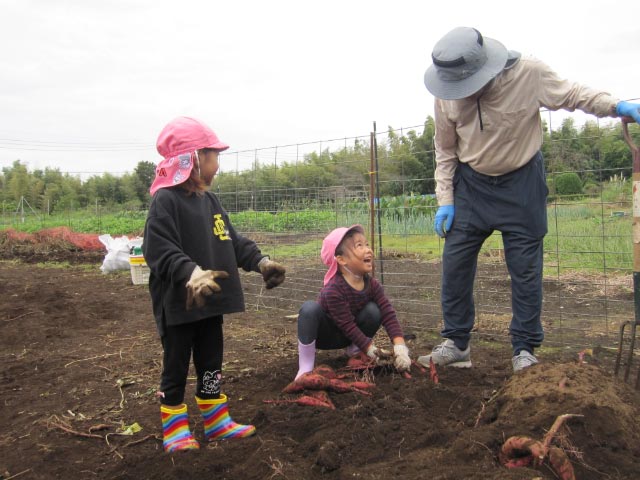 お友だちと「こっちも手伝うね」と声をかけ合いながら、協力してたくさんのおいもを収穫してくれました![]()