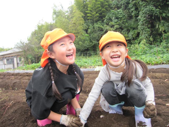 帰りには抱えきれないほどのたくさんのお土産のさつま芋を持ち、嬉しそうにお父さん、お母さんに見せていました![]()
