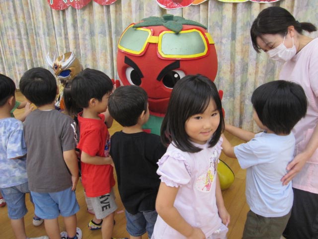 今日は、「ヤツルギ」と「トマ太郎」が保育園に遊びに来てくれました![]()