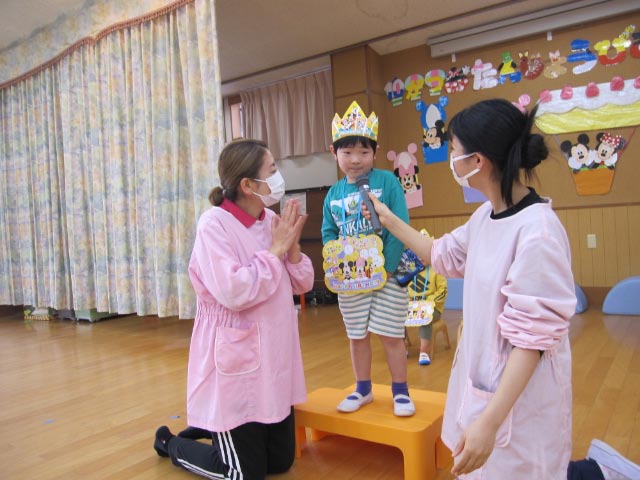 大きいクラスのお友達は自分で上手にインタビューに答えられたね![]()