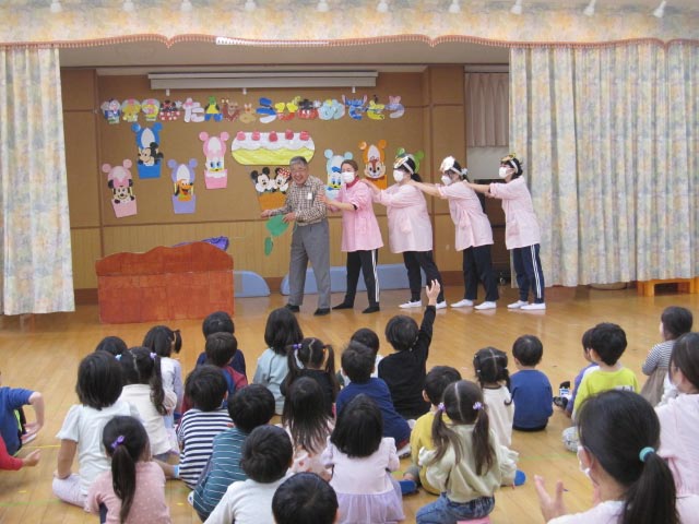 先生たちからは、“おおきなかぶ”ならぬ、季節にぴったりの“おおきなお芋”の劇をプレゼントしました![]()