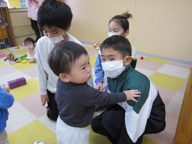 久しぶりに会う卒園児のお友だちと触れ合う姿も微笑ましく、園内があたたかな空気に包まれました