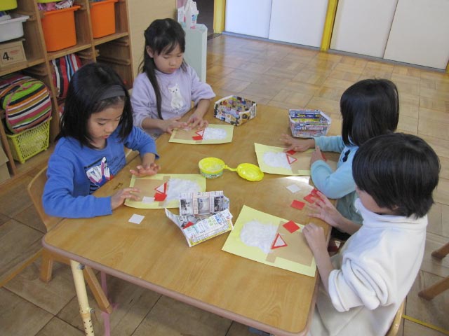 「お正月飾りを飾って、神様にたくさん良いことがありますようにってお願いしようね」と伝えると、子どもたちはぱっと目を輝かせて、「じゃあ、がんばって作らなきゃね!」と、とても可愛い声で応えてくれました